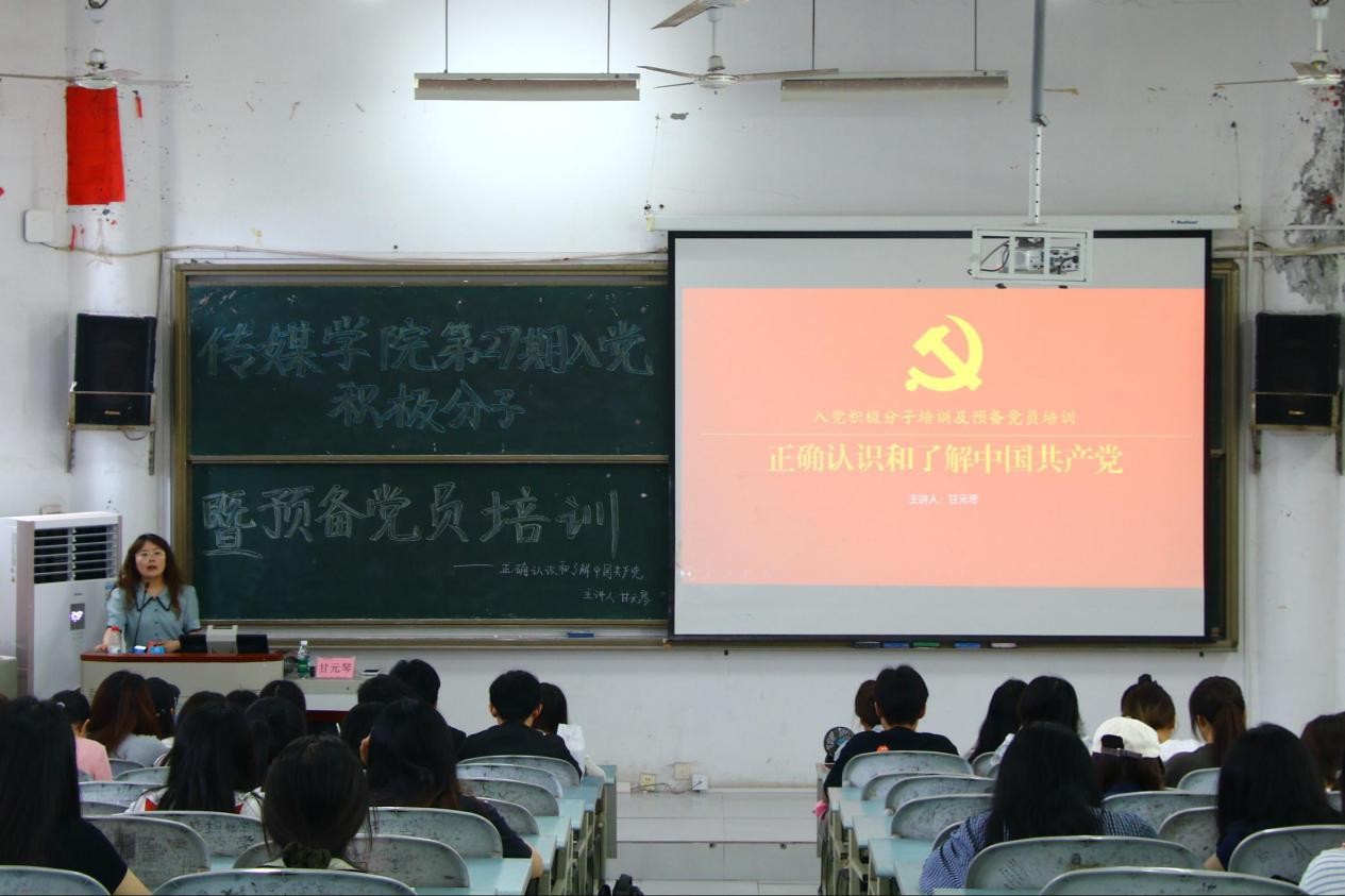 为加强党的建设,提升永乐高60net入党积极分子和预备党员的政治素养,6月5日中午,永乐高60net于格致楼04教室开展了第27期入党积极分子暨预备党员培训。永乐高60net播音与主持艺术员工党支部书记甘元琴担任主讲人,全体积极分子和预备党员参与培训。